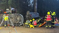 Besonders die seitliche Lage des einen PKWs und die Dachlage des zweiten forderten beide Mannschaften gleichermaßen. Nachdem alle Insassen befreit waren, wurde Vorort die Übung von BI Lukas Hinterreiter analysiert und Verbesserungsvorschläge für den Ernstfall besprochen.