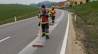 Unter der Einsatzleitung von Lukas Hinterreiter wurde die Ölspur mithilfe der eingesetzten Fahrzeuge (RLFA, KLF-L und MZF) gebunden und die Fahrbahn gereinigt.